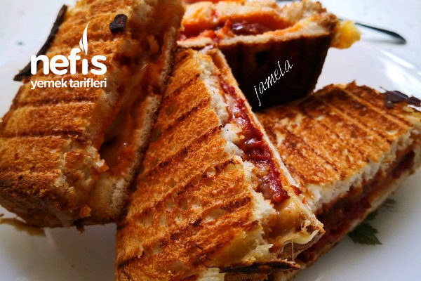 Tortilla ekmeğinde, kaşar peyniri, julyen dana bonfile, köy biberi, kapya biberi, mantar.